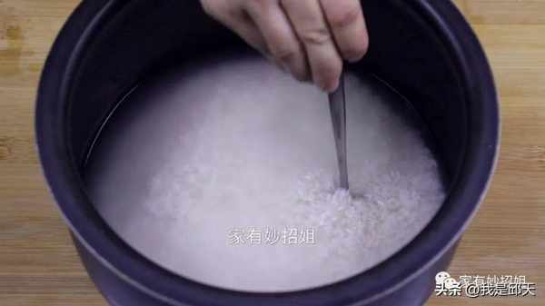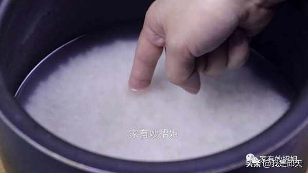 我们的大米淘洗好,下一步就是加水了,加水可是个技术活,水加多了,米饭就会煮稀,加少了,就会太硬,而且还可能会出现没煮熟的情况。其实我们在加水的时候,可以用手指测量一下,我们将食指放在米面上,水位只要没过我们半截食指的高度就可以了。