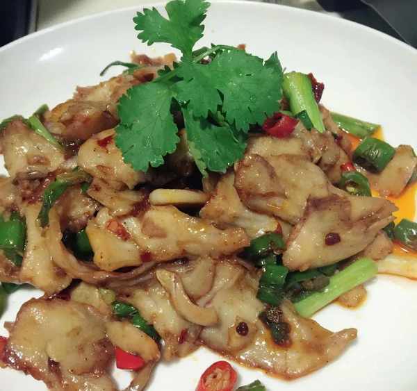 5,把姜丝和青红辣椒放进锅中,爆出香味后,再把鱼片和配料一起混合炒。炒至鱼片刚好断生即可大功告成。