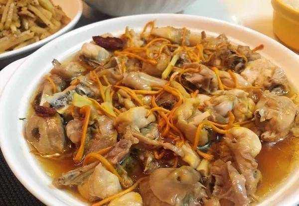 1,把虫草花放在盘中,加入清水,没过虫草花,把虫草花泡发开。
