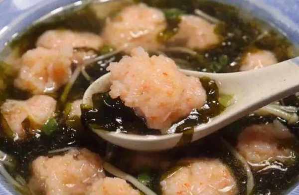 4,把紫菜洗干净,放进锅中,然后加入适量的食盐和花生油,煮至虾滑断生马上盛出,即可享受美味。
