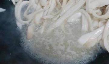 2、锅内加水,烧开后放入杏鲍菇,煮1分钟左右捞出控水备用。