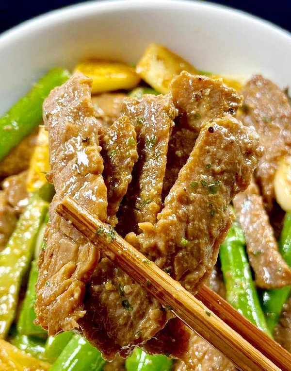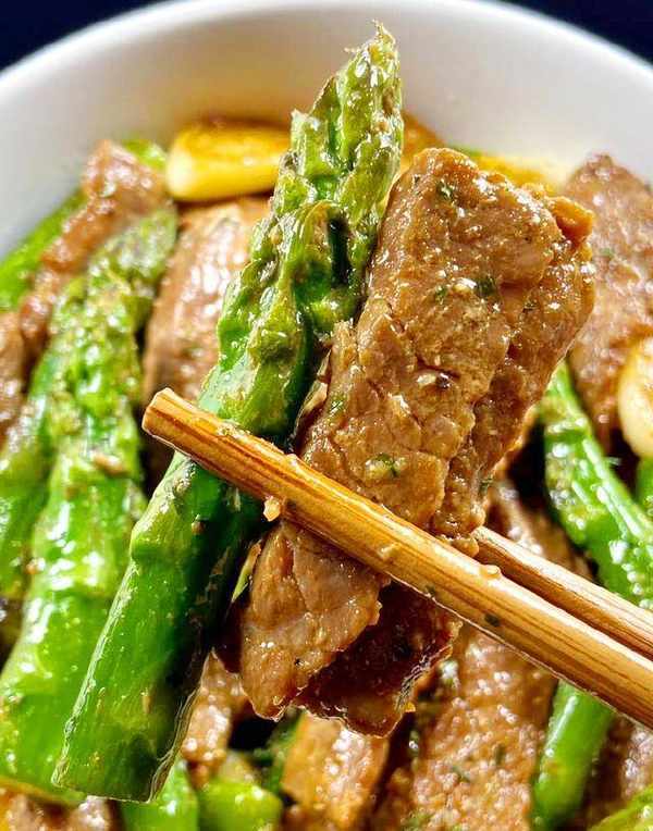 这嫩嫩的芦笋,配上新鲜的牛肉,炒起来真的是非常的下饭。但是我这里没有放辣的,如果说她比较喜欢吃辣的,可以放一点干辣椒,小米辣哈。