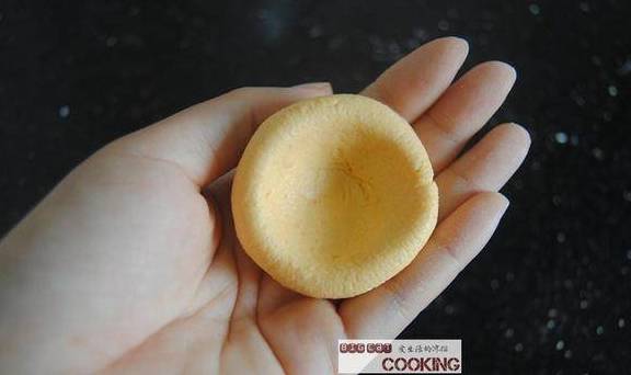 6,用拇指往中间按个坑,这里用来填鲜果沙拉,可爱又好吃哦