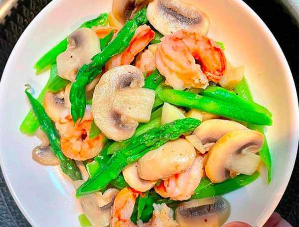 推荐菜谱:虾仁炒芦笋口蘑