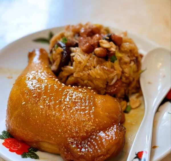 这个糯米饭粒粒分明,伴着腊味特别香醇,里面有很多花生,还有腊肉冬菇和虾米,咸香而不腻,软糯香甜,整个就是好吃,是福建人喜欢的甜口糯米饭。鸡腿的汁水很爽口,皮已经渗透了汁水,吃起来皮脆肉嫩而且还多汁,整个都是浓郁的瑞士汁味道,让人回味无穷。