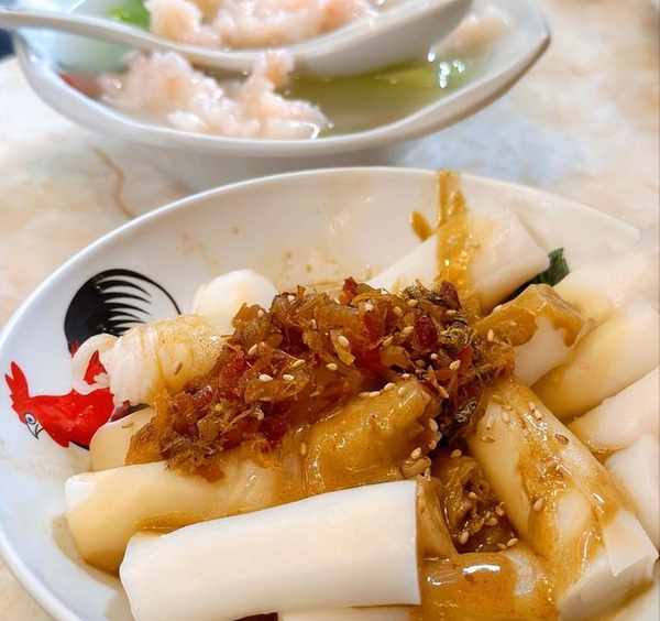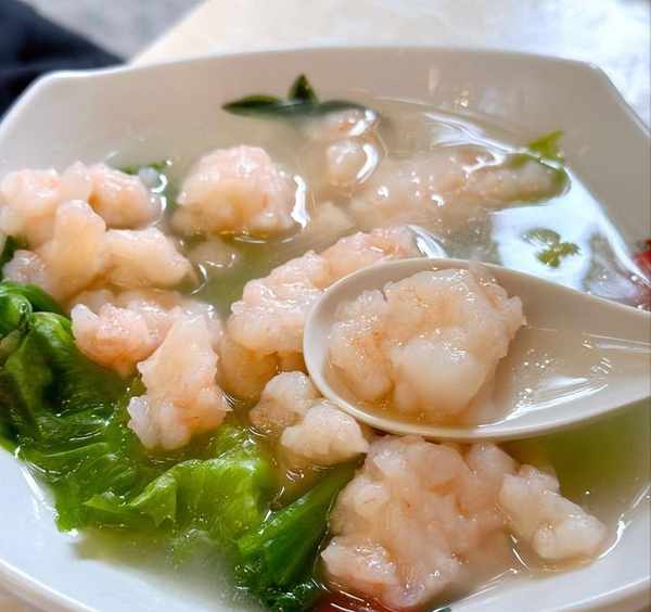 像这个生菜虾滑汤汤底鲜美,虾肉多而Q弹鲜美,生菜鲜嫩而爽口,清清淡淡地喝了浑身都舒畅。猪肠粉还淋了xo酱,上面还有一些咸香可口的虾米,真是又有韧又香滑,适合各种人群。