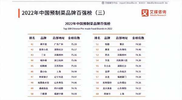 从榜单来看,有聪厨、海底捞、御鲜锋,麦子妈,圣农,安井,国联水产,温氏食品,叮叮懒人菜,广州酒店,自嗨锅,美好,眉州东坡,正大食品,新雅,凤祥食品,信良记,泰森,福成等。