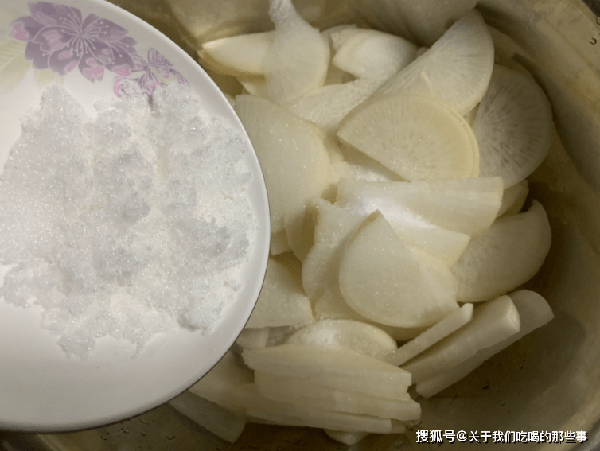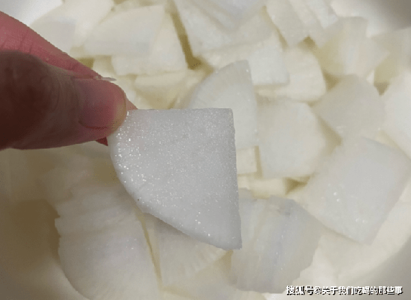 2、萝卜不要直接加盐腌,要先杀出多余的水分。杀水时要加白糖、食盐2样,比例是2:1,这样口感更爽脆。