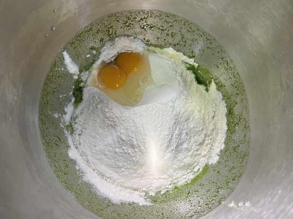 1,菠菜叶洗干净,入开水中煮熟,捞出加少许煮菠菜的水,打成菠菜汁,取150克菠菜汁,加少许盐增加面团的筋性,加入面粉,两个鸡蛋。