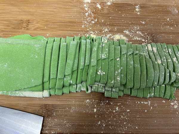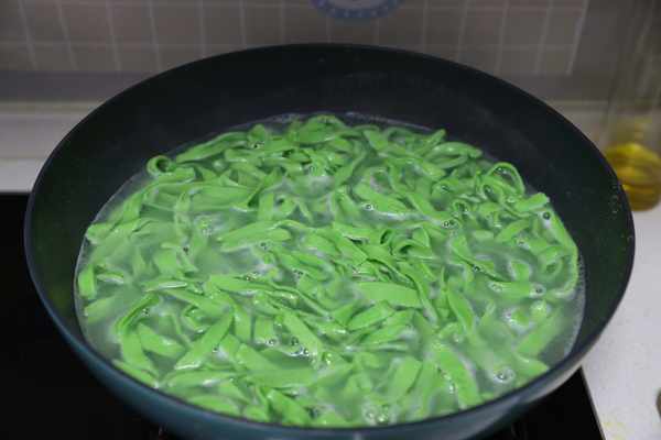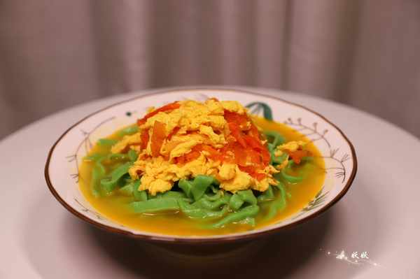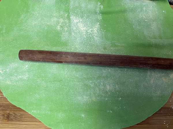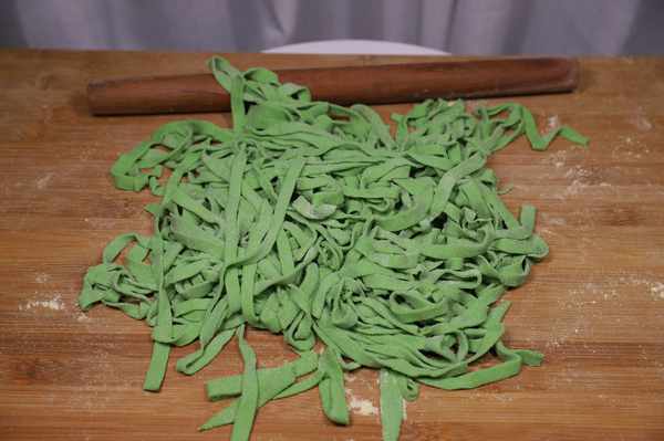 用料:面粉400克,菠菜汁150克,鸡蛋两个,盐少许。