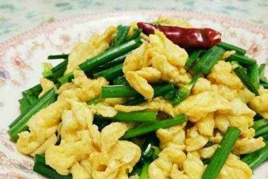 食材:韭苔(韭菜花)1把、鸡蛋3个、油30毫升、食盐1克