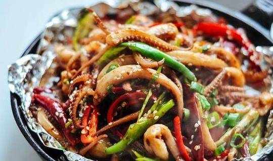 用料:葱姜蒜适量、洋葱根据鱿鱼的量来定、青椒同上、干红椒两个就够,喜欢辣的可以加、花椒,孜然各一小把、白芝麻少量、盐,鸡精,酱油必备品哟;
