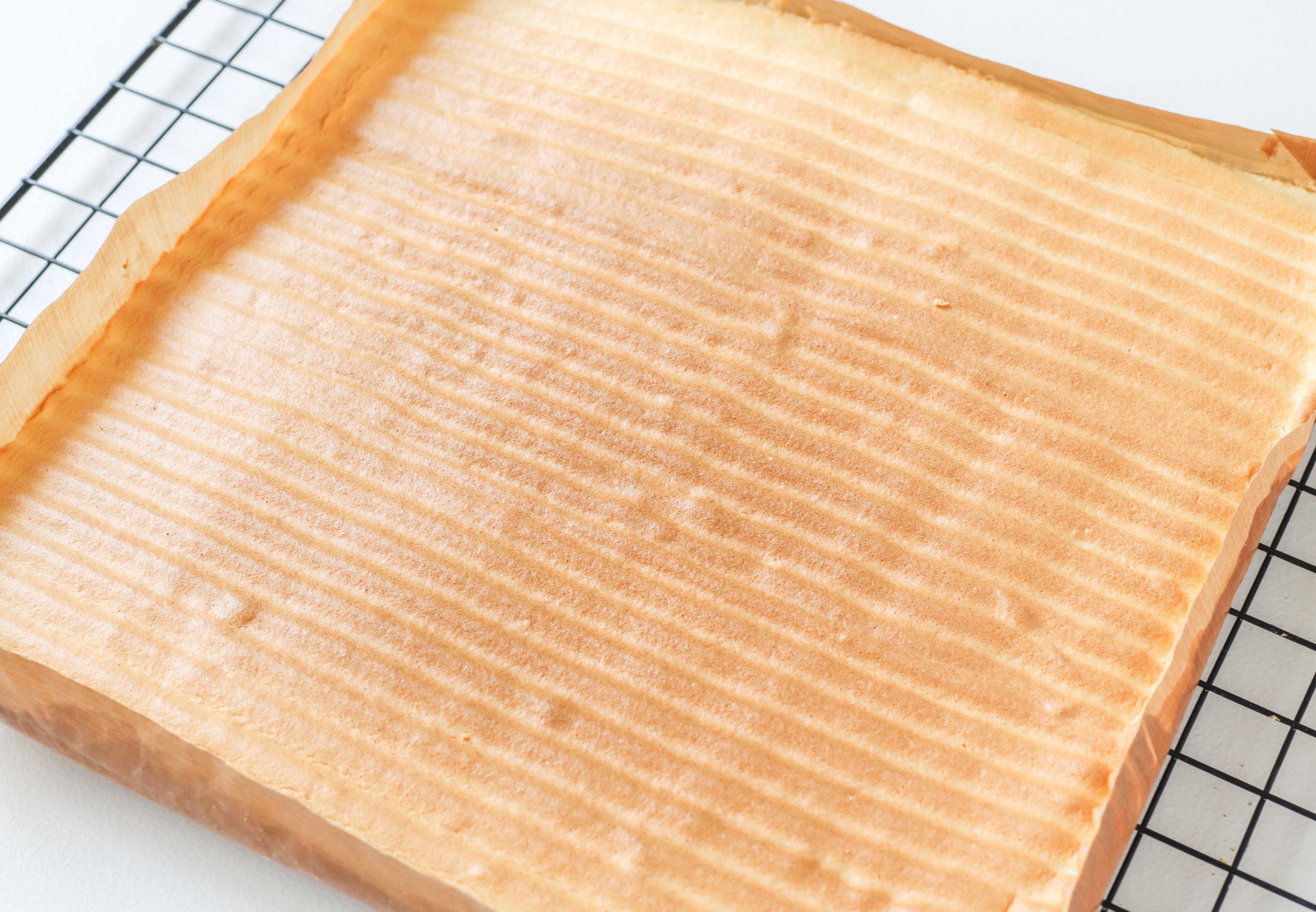 2.蛋糕卷要盖上油纸,防止水份蒸发过快而发生断裂