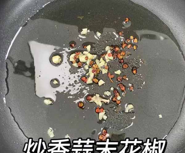 第四步:锅底调入一些植物油,加上一些葱白,姜末和蒜末,放入一些花椒煸炒一会儿,炒出其香味来。