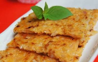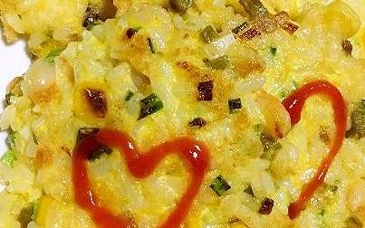 做法:将两个鸡蛋打散!将凉米饭倒入到鸡蛋液中,按自己喜好,可加盐或加糖调味。热锅凉油,将米饭倒入锅中,抹平,用中火将米饭饼两面煎至金黄即可,一道即快又有营养的早餐完成咯!