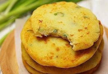做法:准备食材。中等土豆2个、面粉80克、鸡蛋1个、香葱适量。将土豆去皮切块、香葱切末备用。(切块后的土豆更容易蒸软)。接着将土豆放入蒸笼中,大火蒸15分钟左右,直到土豆完全变软。(这一步也可以用微波炉来做,这样更省事一些)。将蒸好的土豆碾成泥,然后晾凉。将面粉、鸡蛋放入土豆中搅拌匀均。把香葱末、1勺盐放入土豆泥中。然后将面团揉匀。取大概60克的面团,揉匀,压扁,然后放入有油的平底锅中,小火开始煎制。煎至一面金黄时翻面,直至双面金黄,成熟时取出即可。葱香牛奶红薯饼