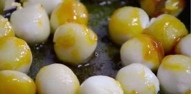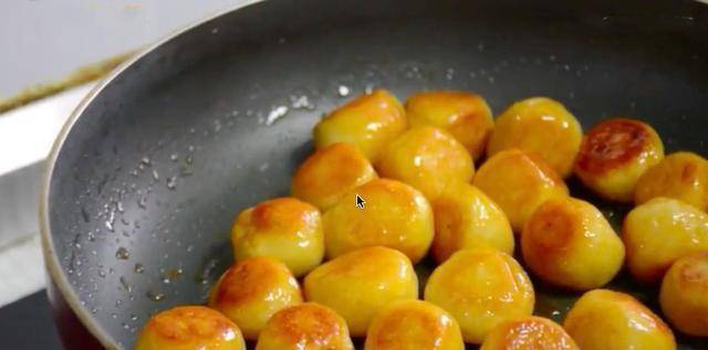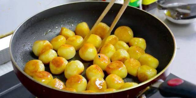 这不是新吃法了,小时候老妈就是这么做给我们吃的,现在我又做给儿子吃,非常爱吃。大家可以看到,在炒的过程中,汤圆慢慢的就会膨胀,越来越大,而且他也没有那么的圆了,但是颜色却十分的好看。