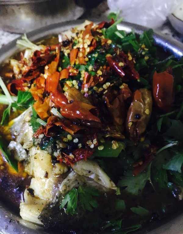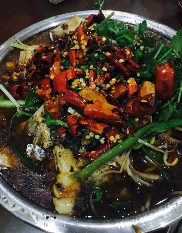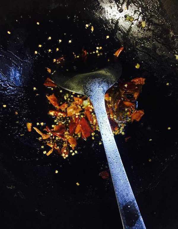 10、锅里流入底油,继续烧热以后加入干辣椒和花椒炒香了以后就浇在鱼片上面,就可以啦。