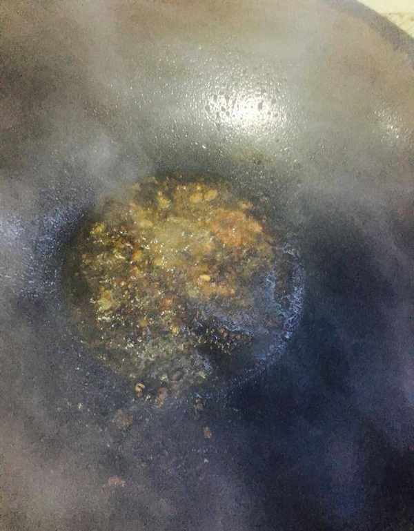 3、先把锅加热了以后,在锅里面倒入猪油,开火烧让它开始冒烟了以后就加入豆瓣酱、五香粉和豆豉倒锅里去煮。