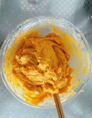 2、再将要吃的肉给它弄成泥状,要是细一点的。然后把绵白糖和面粉加入在一起,将它们给混合一下,要充分地融合在一起。