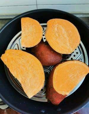 做法:1、准备好所有的东西,把红薯清洗好了,并且切成几个块状。接下去,再放入到锅里面去蒸。好了以后将它的外皮给削掉。