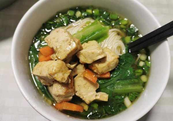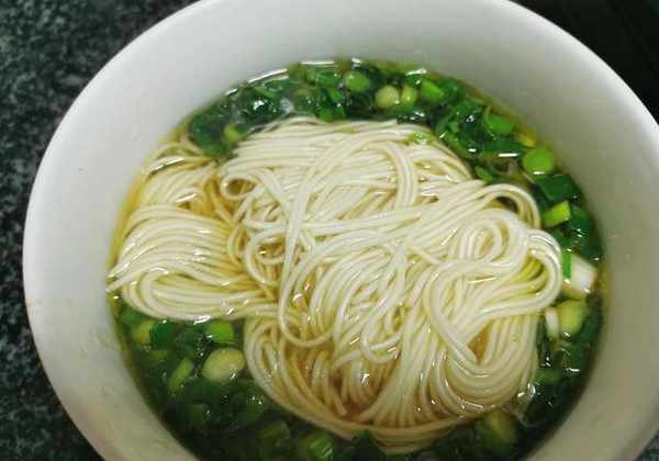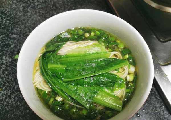 开水下面,开水要足,这样才不黏连,才劲道。下面后第一次水滚,适当点一点冷水。二开后下入绿菜,再开就关火。