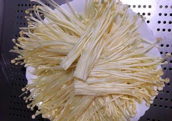 做法:1、准备好需要用到的全部东西,把金针菇去掉根部,然后撕成小朵,清洗干净了,根部可以多切一些,因为后面是有毒的,然后稍微挤掉多余的水分。