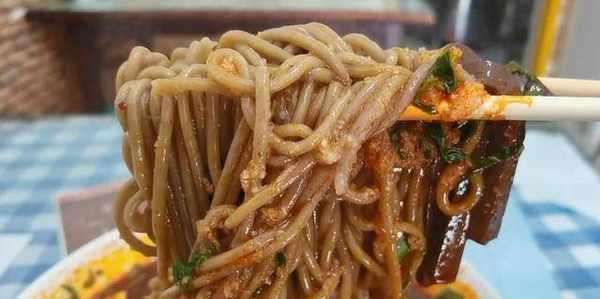 而且店里面的面条也是一碗一压的,所以口感很好,还有就是这个面条会比棍棍面细很多,但是吃起来也很有嚼劲,老板说做这个面条虽然没有什么讲究,但是过水是非常重要的一个环节,这个环节做好了,面条的口感才最好,就是将面条煮熟以后还要过一遍凉水,然后再过热水,才能够放红汤。