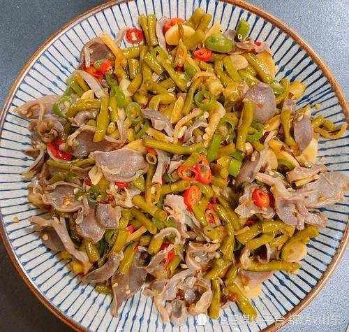 6.鸡肫平炖,将酸豆的酸味和辣椒的辣味煮熟,渗入鸡胗,最后加入适量蒜段,翻炒均匀,倒入适量生粉水,翻炒至蒜头碎,即可煮熟。