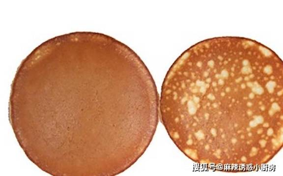 若锅面油分不匀,容易煎出失败的松饼(如左)。