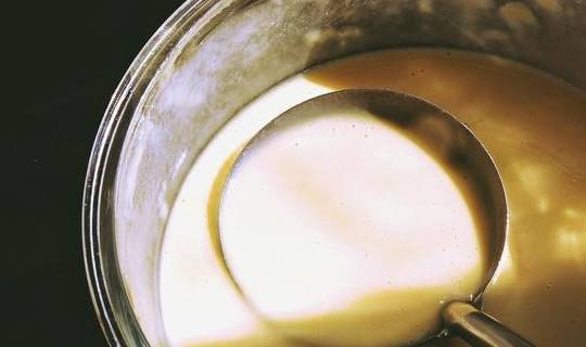 2.将150g温水缓缓倒入碗中,边倒边搅拌