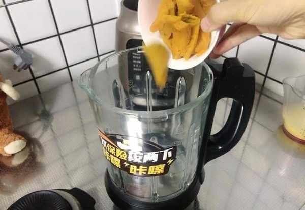 3、将处理好的熟南瓜块直接倒入破壁机杯中,如图所示。