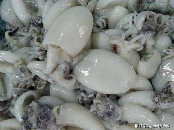其次,可以通过看形状来区分这些海鲜。章鱼的头部是圆圆的,乌贼的头部和身体呈现为袋状,鱿鱼的头部和身体则比乌贼的更尖一些,这几种不同的形状还是很容易就能看出来的,比较直观。