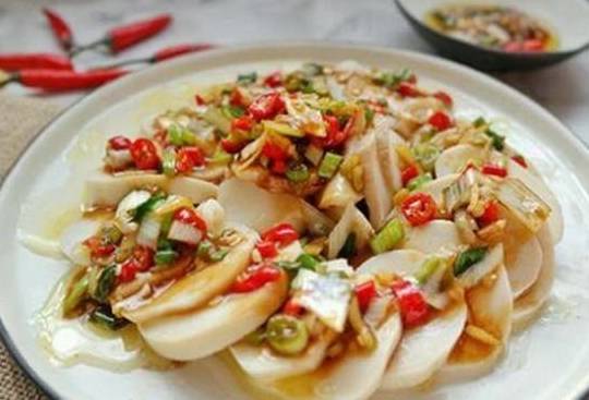 葱油淋杏鲍菇的主料:杏鲍菇、生姜、葱末、小米椒、生抽、耗油、食用油