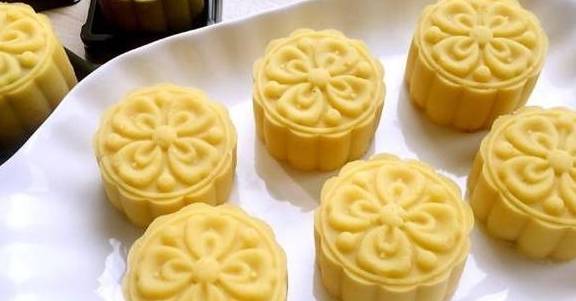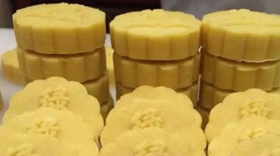 第四步,准备模具。把模具的内外都涂抹上油。然后把两种版本的豆沙取一小块倒进模具中,用手压扁,然后反过来把绿豆沙磕出来这样两种绿豆糕就都做好了。大家可以按照自己喜欢的,选择不同的绿豆糕。