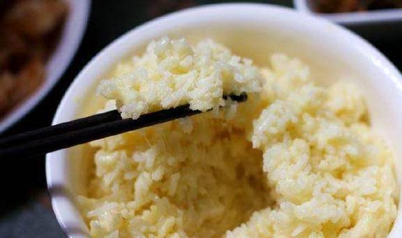 6.往米饭里打入一个鸡蛋。