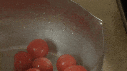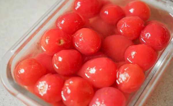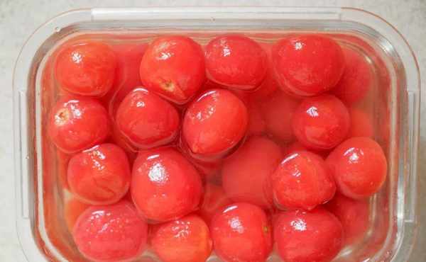煮熟的小西红柿表面软糯。