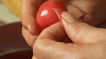 2.将西红柿去皮,放入干净的容器中