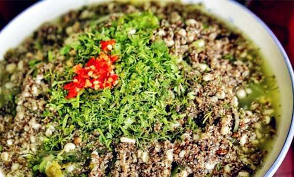 例如,一种名为牛沙泡的美食,是用黄牛的胃液胆汁与未消化的草料渣相连制成的。很多游客知道成分后就不敢吃了。比牛撒包更“重”的食物还有很多,比如“一袋竹鼠四只”、“一盘三只蚊子”、“蚂蚱当小菜”等等。