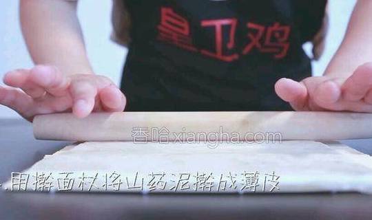 4.用擀面杖将山药泥擀成薄皮。