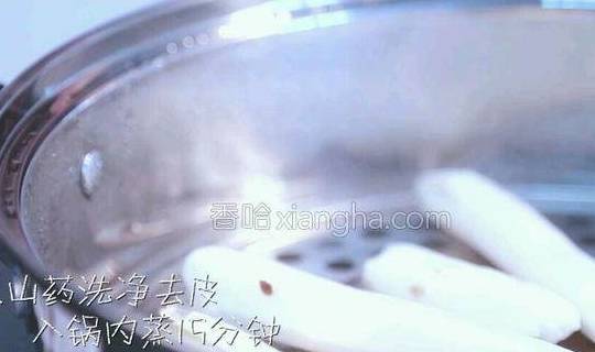 配料:铁棍山药2根、枣泥100g、桂花蜜适量烹饪步骤:1.将山药洗净去皮,入锅内蒸15分钟。