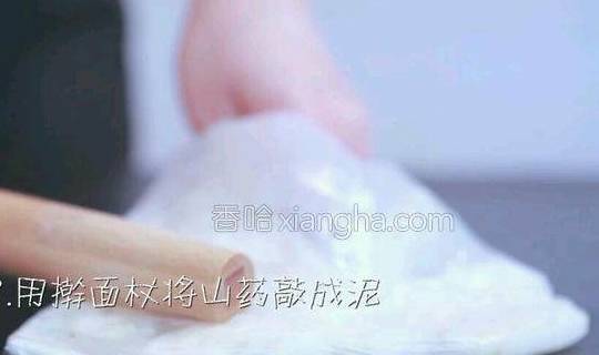 3.用擀面杖将山药敲成泥。