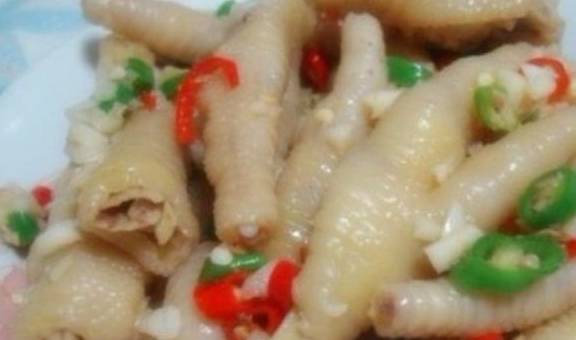准备食材:鸡爪、姜蒜、辣椒酱、料酒、白糖、米醋、酱油、盐、油。
