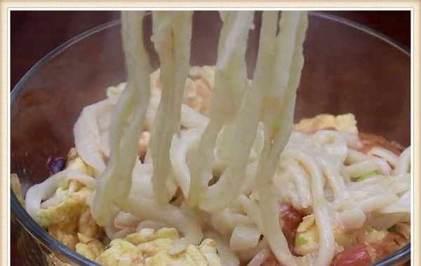 烧半锅水,水开以后下入面条煮两分钟,快速的搅散,面条煮熟后不用过凉水,放在碗中,加入刚刚炒好的西红柿鸡蛋,搅拌均匀,特别的有食欲,非常的香辣可口,特别好吃。面粉的新吃法就制作完成了,这样做非常的简单好吃,而且吃上去一点都不油腻。