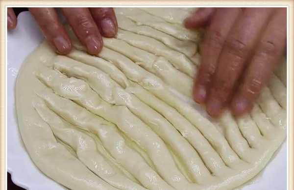 首先准备200克的低筋面粉,加两克盐,增加筋性,也可以用高筋面粉会更加的筋道。一百克的温水和面,搅拌到没有干面粉,下手揉成面团,揉上五分钟给它彻底的揉光滑,用擀面杖擀成饼,面饼对折,用刀切几刀,不要切断,切成这个样子就可以了。给它掰开。在每个缝隙里面都抹上油,盖上保鲜膜,静置一个小时。西红柿切小块。