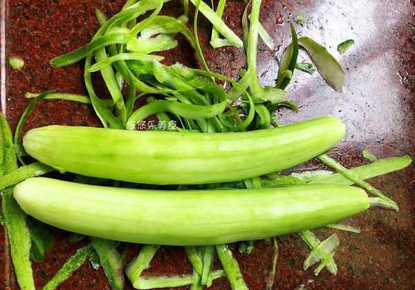 1.这个黄瓜的皮很厚,所以在煮之前要用削皮刀把皮削掉;