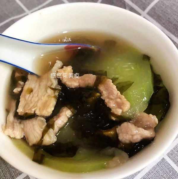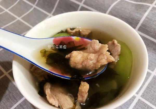 清爽香甜可口的黄瓜瘦肉紫菜汤就完成了。春天的温度正在慢慢升高。爱美的女性一定觉得脸上的皮肤干燥脱皮、不舒服、痒。其实是因为缺水。天气又热又干,不舒服。除了多喝水,饮食方面也要进行调整。少吃油腻食物,多吃清爽食物,对身体健康有帮助。