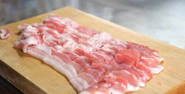 3、肥瘦五花肉切成硬币大小的薄片。切好的鲜肉放冰箱冷藏1小时更好