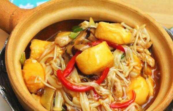 步骤2:将日本豆腐切成约2cm厚的厚片,沾上一层淀粉,放入锅中煎至两面金黄,取出备用。第三步:金针菇洗净沥干水分,蒜切末。换干净锅,锅底铺上金针菇,放入炸好的日本豆腐,撒上蒜末,倒入酱汁,盖上锅盖,小火炖7分钟。