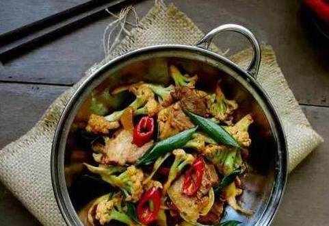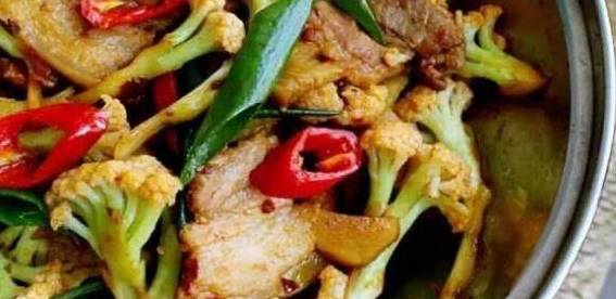 记不得什么时候,市面上出现了这种有机花菜,口感脆嫩脆嫩滴,尤其适合干锅做法,干香微辣,一人吃掉一盘不是事儿(^_^)花菜吸收了五花肉的油香,变得有滋有味,是一道很不错的下饭菜~~松花菜不用焯水,如果用普通菜花,焯水时间要短,及时过凉再充分沥干,否则真就是五花肉焖菜花了。